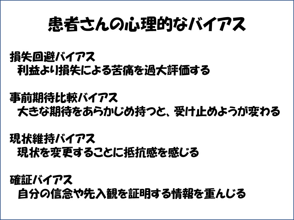 では何が手術をしたい気持ちを決めるのでしょうか。それには心理的なバイアス(考え方の偏り)がかかわっているように思えます。