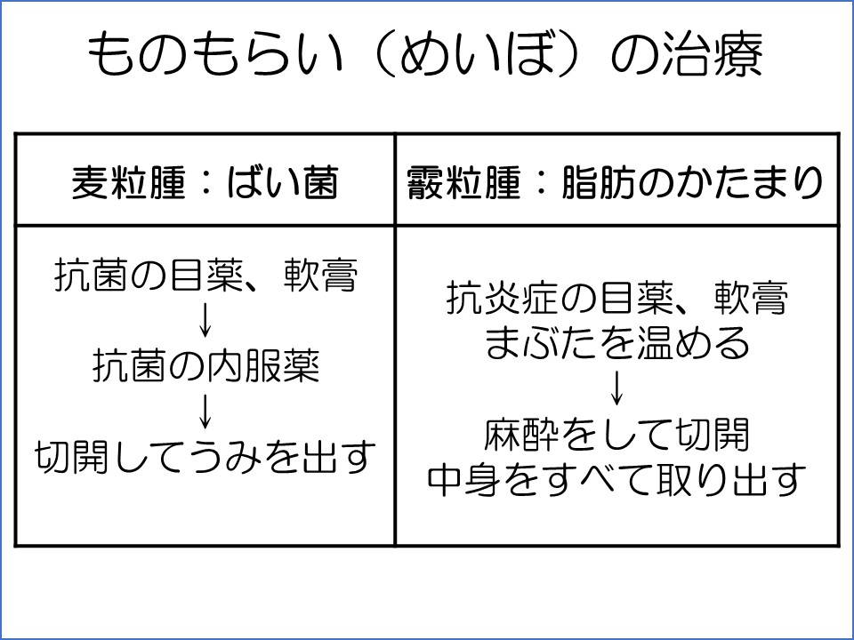 前回はものもらいには3種類あって、種類により治療期間が違うことを説明しましたが、今回は種類によって治療法と治療経過も違うことを説明します。