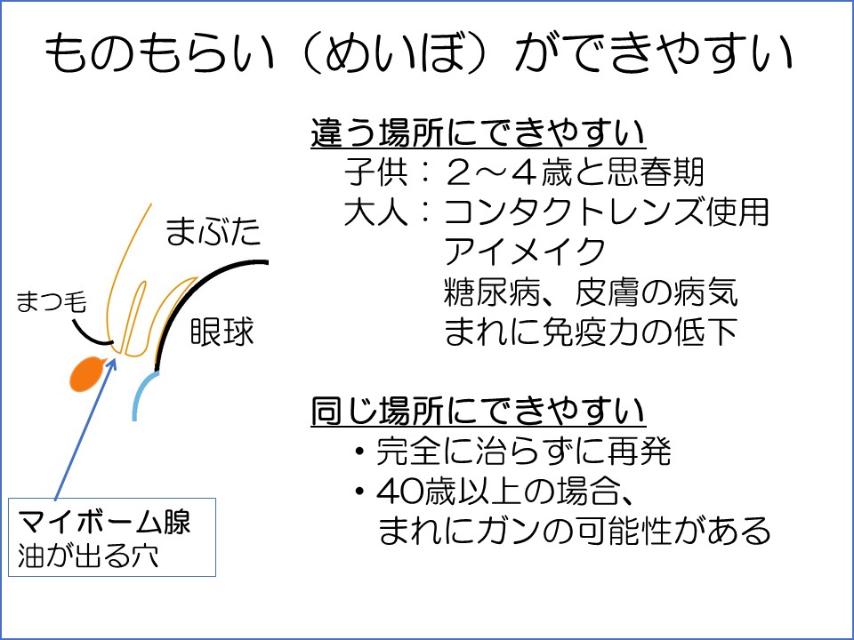 ものもらいが繰り返し起こる場合がありますので説明します。