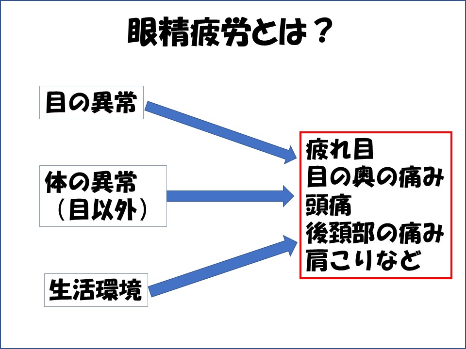 次回から、眼精疲労の原因のうち、代表的な病気や環境要因をみていきたいと思います。