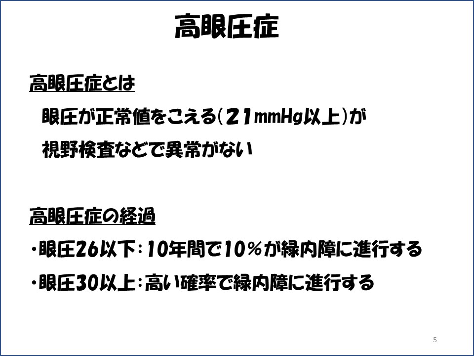 今回は、まだ緑内障になっていないのに緑内障と診断される場合がありますが、そのうちの高眼圧症について説明します。
