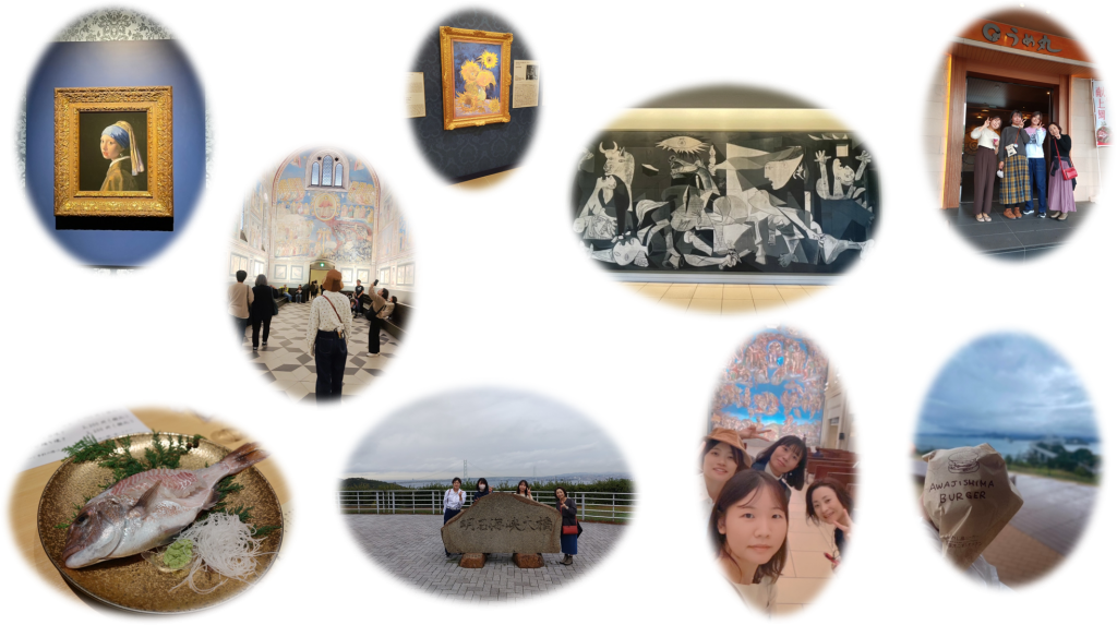 神戸から明石大橋、鳴門大橋を通り、車で1時間半で大原国際美術館へ着きました。国内最大規模の美術館ということでとても楽しみにしていました。陶板画、画礼拝堂や壁画など空間ごと再現展示されており、館内はとても広くて鑑賞ルートは4㌔もありました‼今まで教科書や紙面でしか見ることのできなかった絵画が実寸大でみられて感動しました(^^)v疲れた頭と身体で「うずしお温泉 うめ丸」に宿泊し、身体の芯から癒されました(#^.^#)