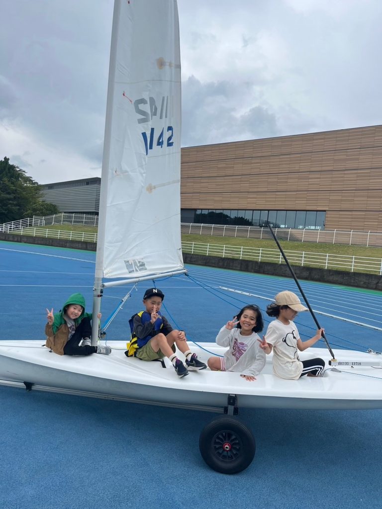 スタッフの子供たちも、普段することのない、弓道、ヨットに興味深々。