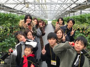 それからハウスへ移動して、さぁいちごの食べ放題!!!